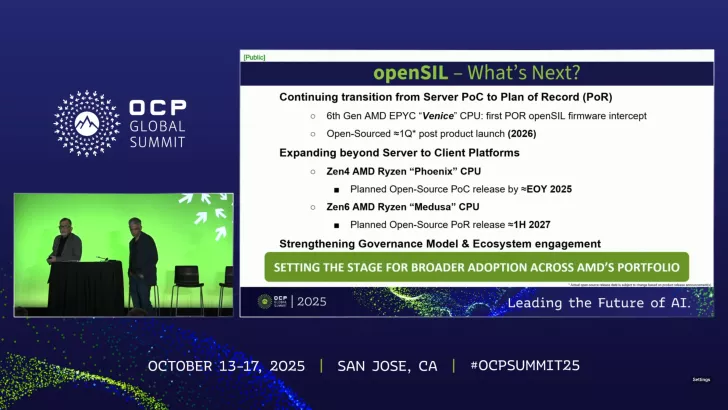In 2024, AMD elaborated on openSIL’s role in Zen 6-based Ryzen and EPYC CPU platforms. At the OCP 2025, Raj Kapoor, AMD’s Chief Firmware Architect, outlined openSIL’s roadmap, noting that the EPYC “Venice” CPUs will be among the first to benefit post-launch. The standard open-source firmware release follows one quarter after product debut.