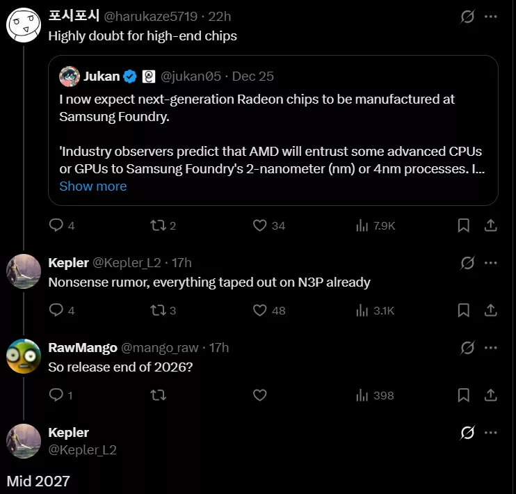 Rumors indicate that 2026 might be a quiet year for AMD Radeon GPU announcements, with sources suggesting that the next-gen RDNA 5 GPUs are slated to hit the market by mid-2027. It appears AMD will focus on ramping up production in the latter half of 2026 in preparation for the official launch. Interestingly, while speculation arose about Samsung’s involvement in the production, reports clarify that AMD has opted for TSMC’s N3P process technology, an upgrade from the existing N4P node used in the RDNA 4 lineup.