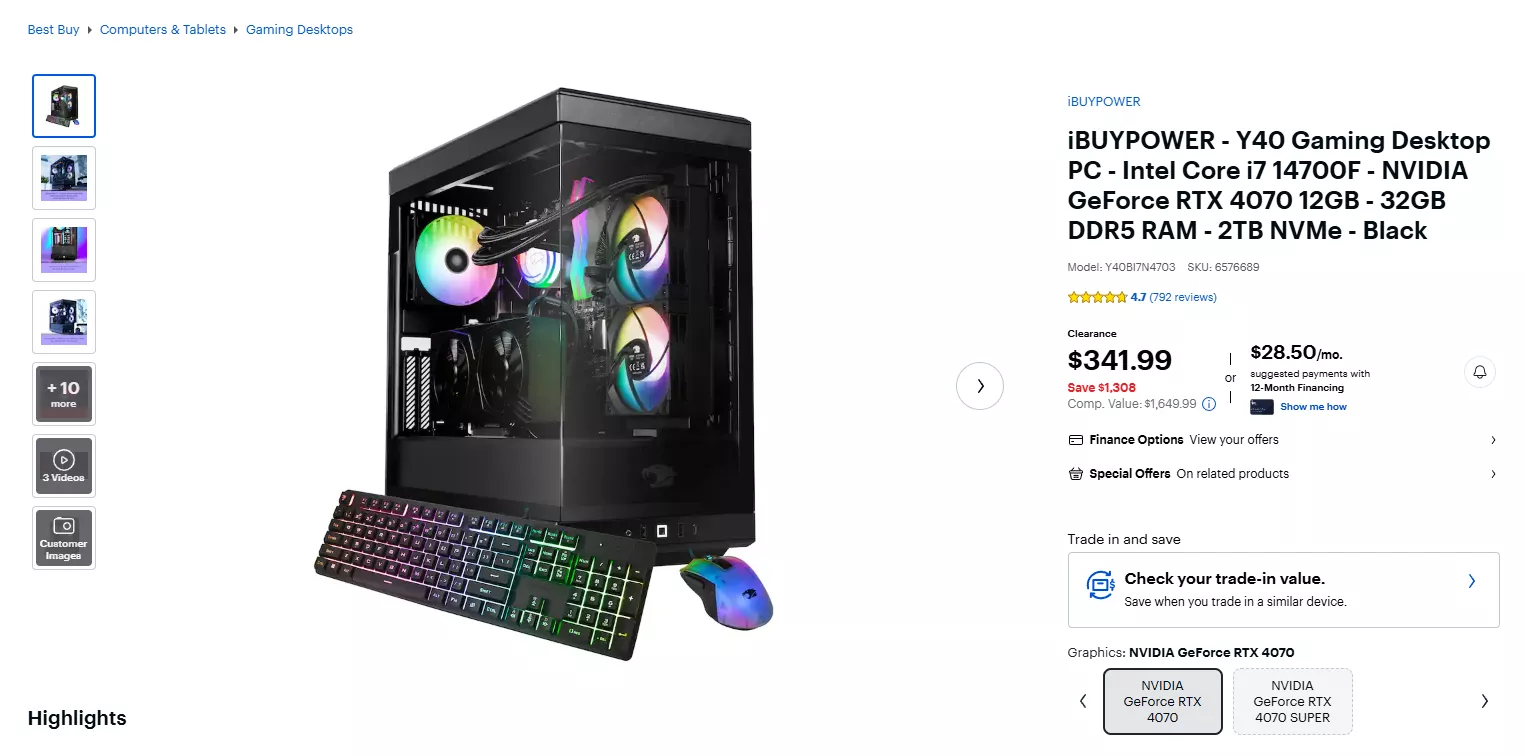 Visiting a local Best Buy store, the lucky buyer discovered a powerful setup boasting an Intel Core i7 14700F CPU and NVIDIA GeForce RTX 4070 12GB GPU, alongside 32GB of DDR5 RAM and a 2TB SSD. The system’s retail value exceeds $1200, marking a savings of almost $900 with this purchase. This incredible deal allows gamers to play the latest AAA titles at maximum settings, making it a steal of the decade.