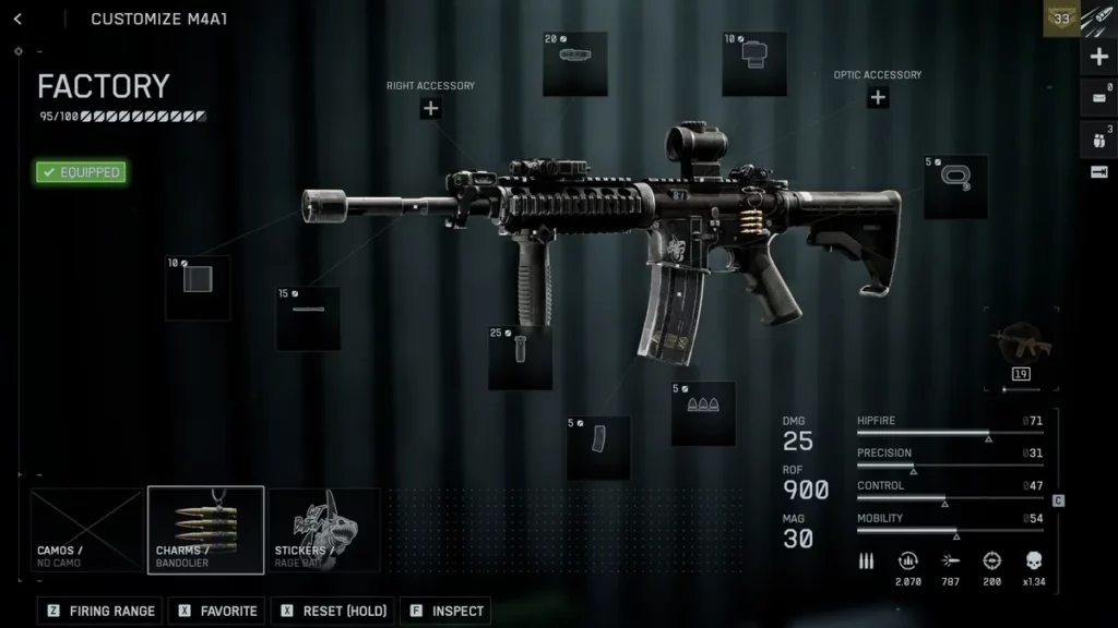 - M4A1 (Carbine, Rank 2): A top-tier weapon, the M4A1 boasts high firepower and speed, making it a staple choice in any loadout. The setup includes a Convertor Linear Comp or Double-Port Brake for the muzzle, Light 12.5″ Fluted barrel, and a 6H64 Vertical underbarrel, coupled with an efficient 30RND Fast Magazine.